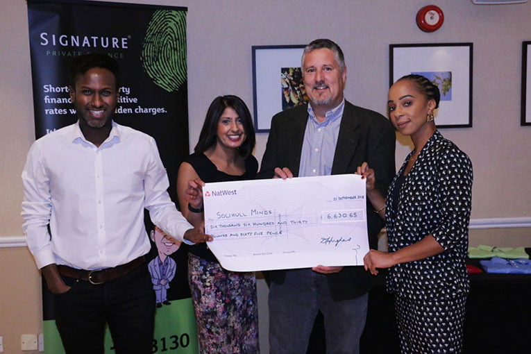 Short-term property finance firm Signature Private Finance recently presented a cheque for £6,630.65 to support its chosen charity, Solihull Mind.